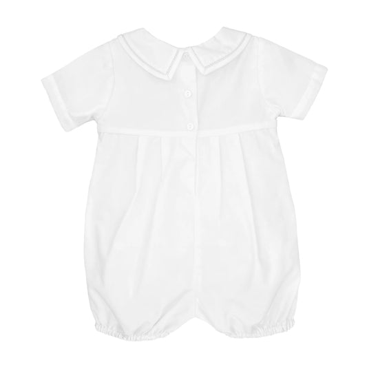 White Horizontal Smocked Romper with Hat