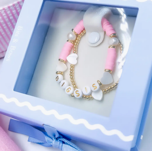 Blue, White, & Pink Hearts Bracelet Gift Set