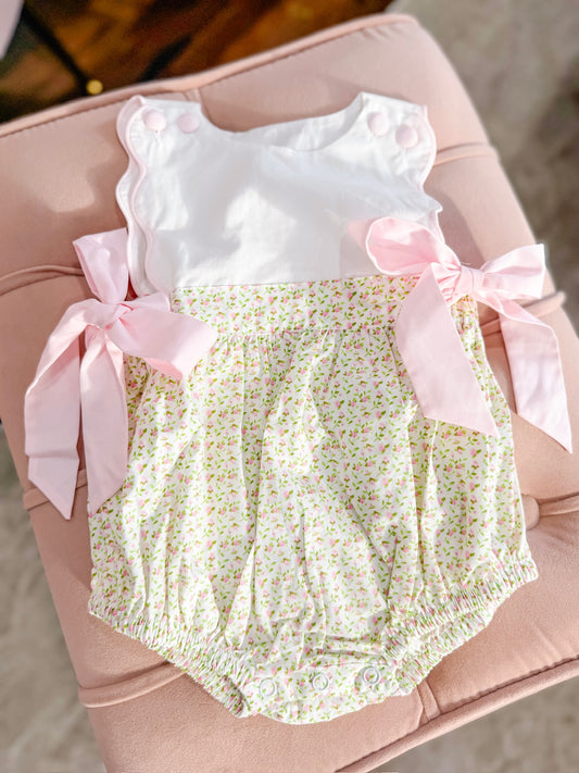 Pink Bows Smocked Bubble