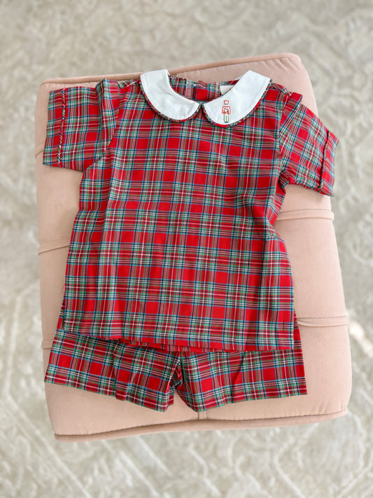 Red Bows Embroidered Long Sleeve Pajama Short Set