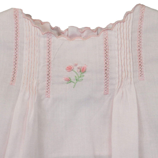 White and Pink Flower Embroidered Smocked Dress with Bloomers & Bonnet