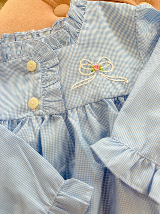 Red Bows Embroidered Ruffle Sleeve Nightgown