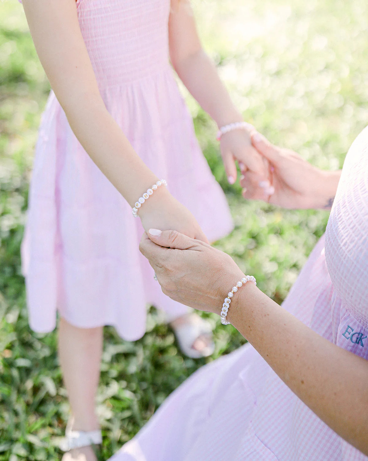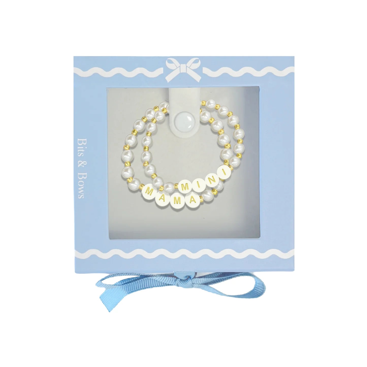You and your little girl will be wearing your hearts on your sleeve with the Mama and Mini Bracelet Set. Each set includes two stretch bracelets handmade of assorted pearlescent white and gold plastic and metal beads. Celebrate your special bond in Mommy-and-Me style.