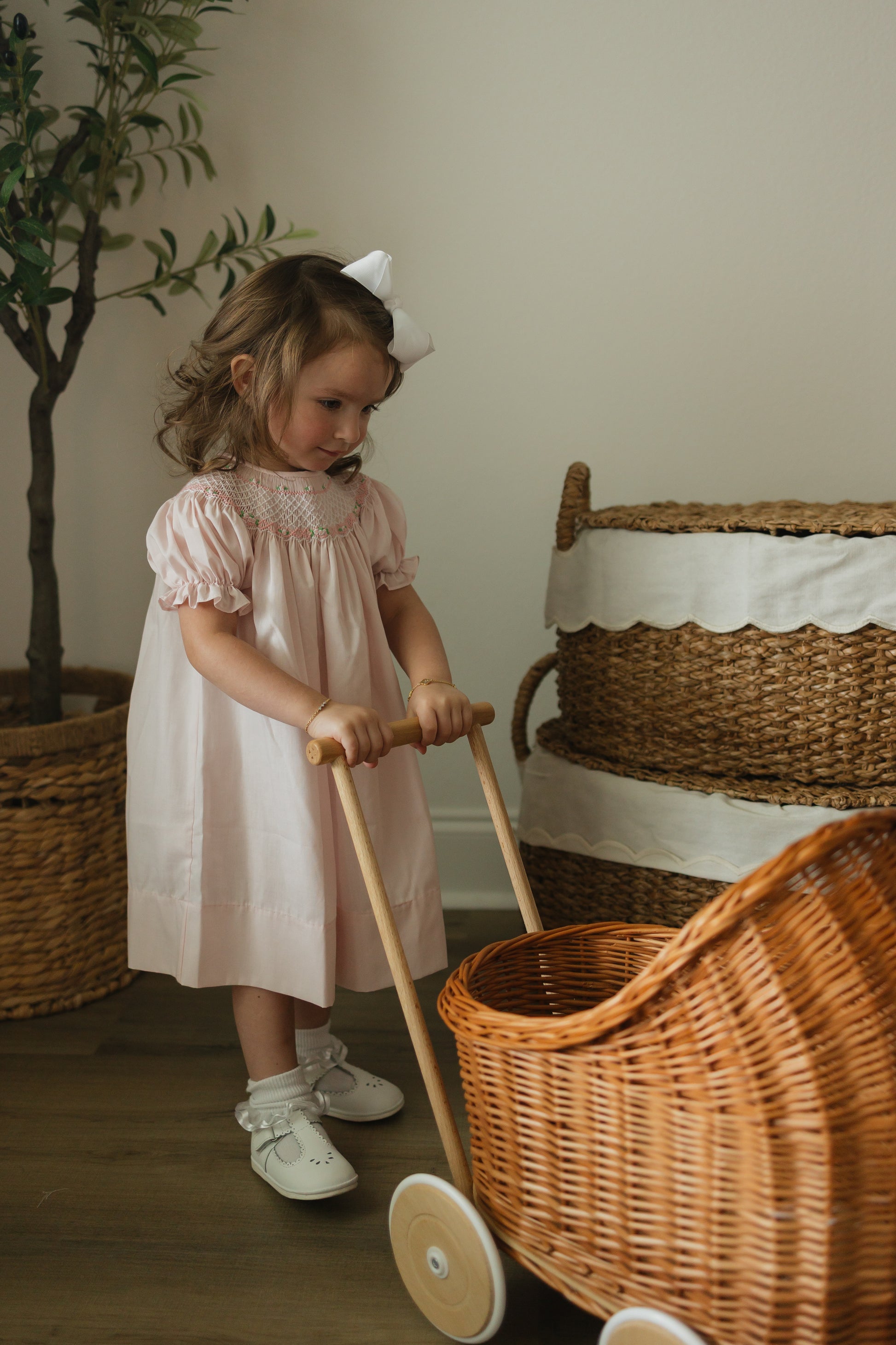 Pink Bishop Dress with Bullion Roses